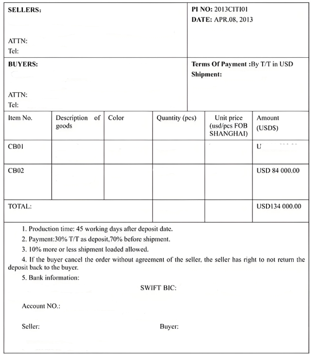 付款方式:付款方式對(duì)公賬戶有外匯銀行賬號(hào)付款、信用證、貨物付款交單、承兌交單等多種方式。可以選擇外匯銀行賬號(hào)付款方式,要求買方在發(fā)貨前支付100%的貨款,或者買方支付30%-50%的定金,然后在發(fā)貨前支付余款。